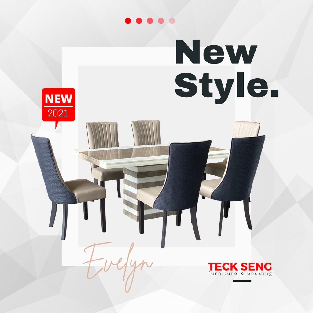 Teck Seng Evelyn Marble Dining Set Set Meja Makan 1 Marble Dining Table 6 Dining Chair 1600mm Table 1800mm Table Shopee Singapore